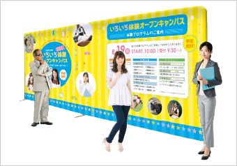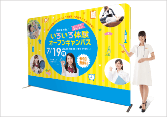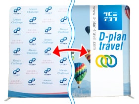 袋状に縫製された印刷メディアは布製なので、たたみ方によってはシワが生じてしまうこともありますが、本体骨組みにかぶせた際にたるまずにしっかりと張るようにしているため、多少のシワがあっても気になりにくいというメリットもあります。